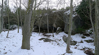 Els senders tant de pujada com de baixada es fan força bé , tot trepitjant la neu verge , encara que de cop comencem a trobar unes ensangonades petjades de senglar. Sols ens faltaria trobar una d'aquestes bestioles ferides , de cara i amb neu !.